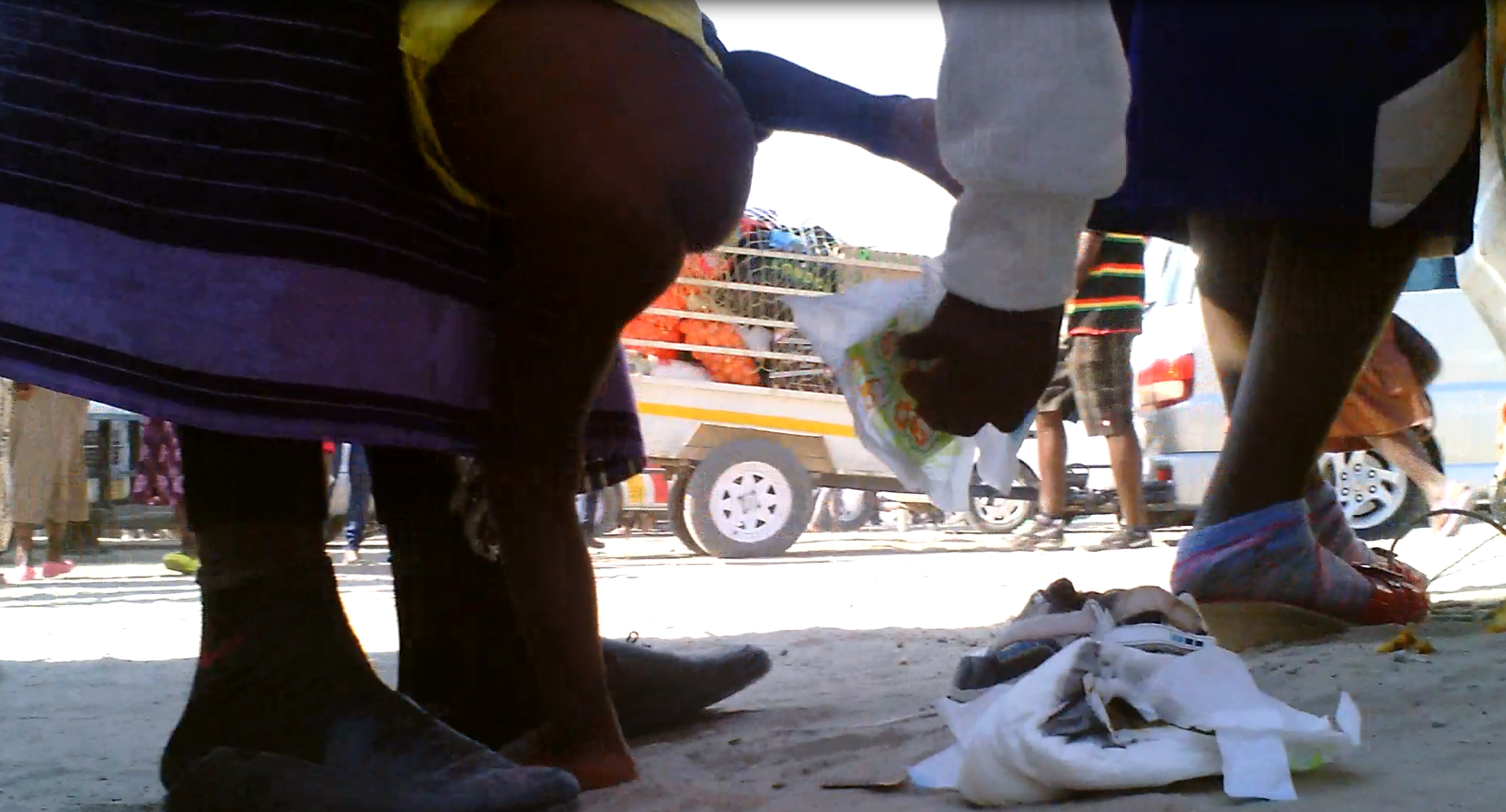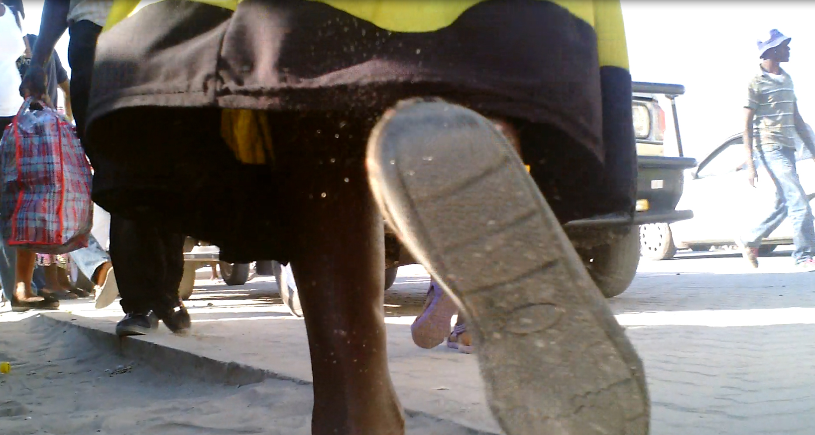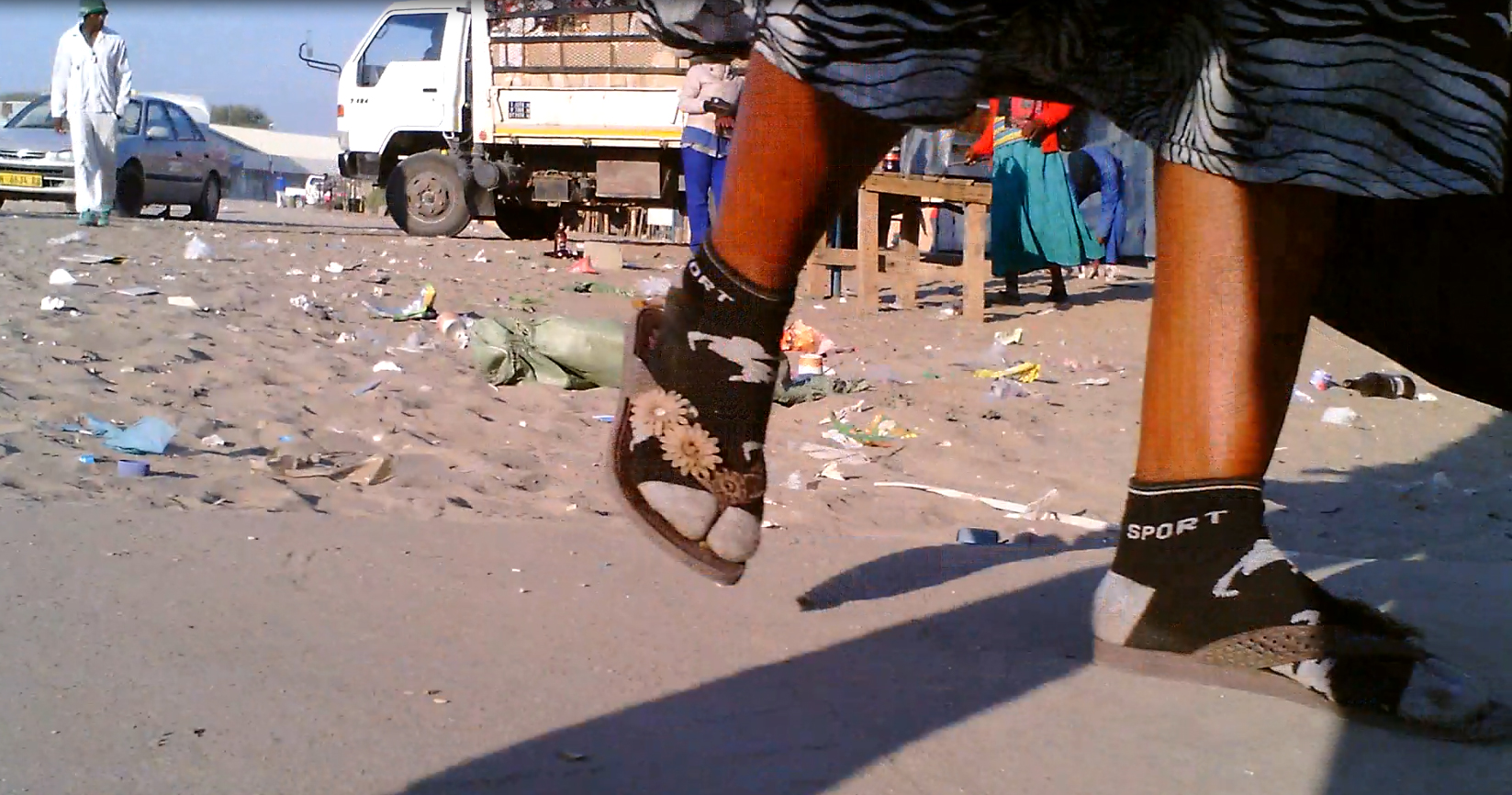 Heavily inspired by the great work of the Harvard Sensory Ethnography Lab I have been looking for ways to film people immersed in their daily routines in modern African society, once again involved into my favorite subjects mobility, consumption and transformation. Since a camera in the face is annoying people I thought that a camera at the feet would do less harm and would not hurt privacy. My family and I took time to follow peoples feet around Rundu town – and we caught some pictures proving that feet are persons of their own and that searching is like dancing. The film is still in preparation but some screenshots can be seen here.